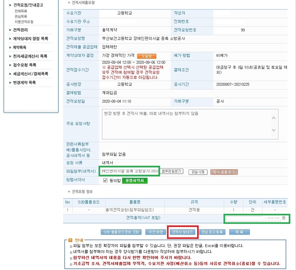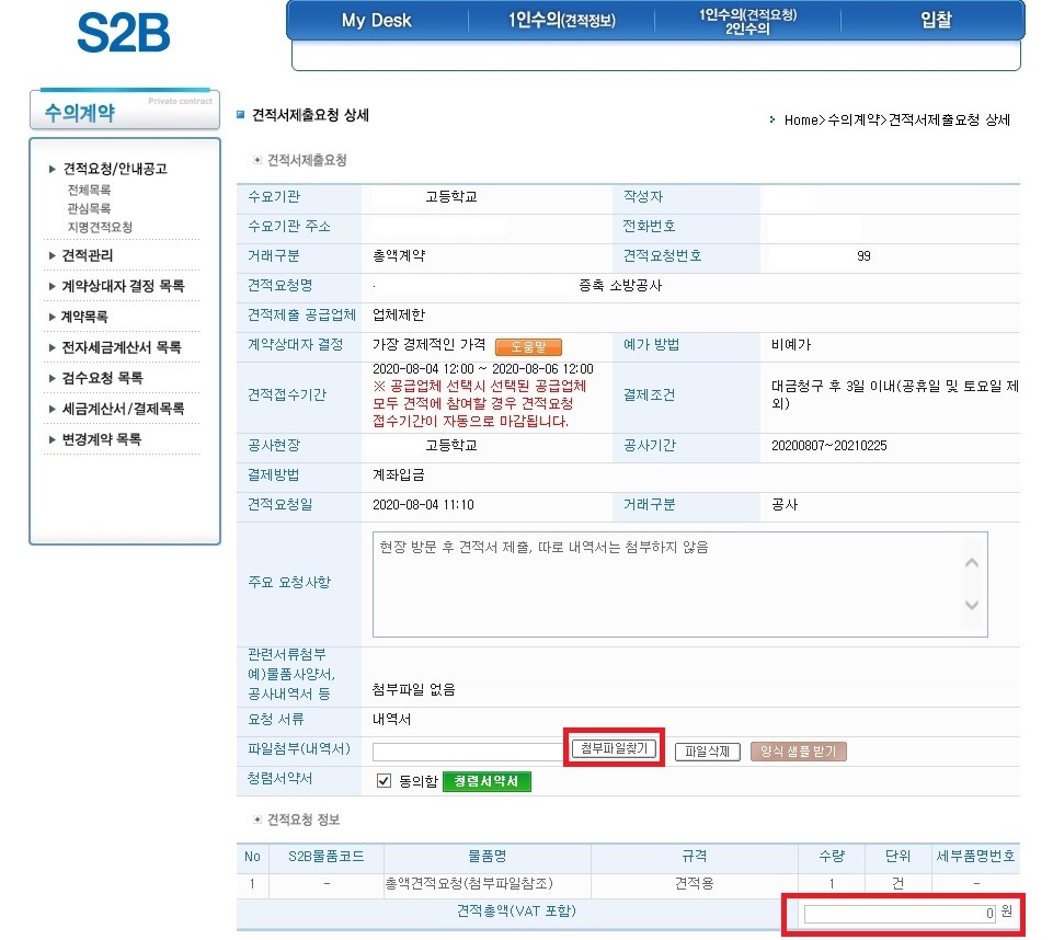 (첨부파일 또는 견적총액을 다르게 하면 귀찮은 일이 발생하니 재확인은 필수입니다.)