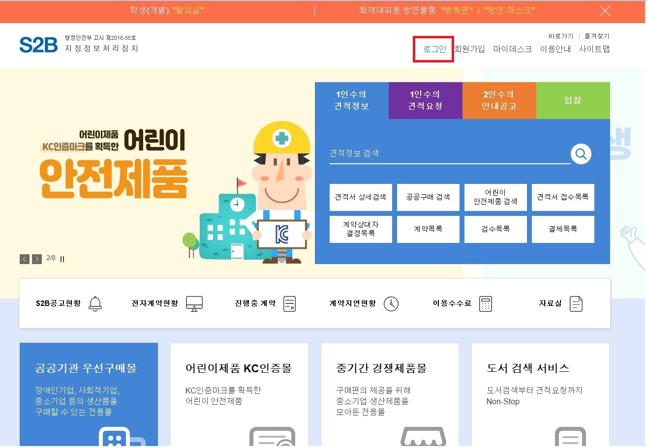 1.S2B(http://www.s2b.kr)사이트 접속 후 우측 상단 로그인 클릭