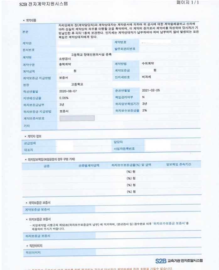 (계약하는 공사금액이 크지 않아서 대부분 계약보증금지급각서 대체가 많은데 이번에는 보증서요청을 했기